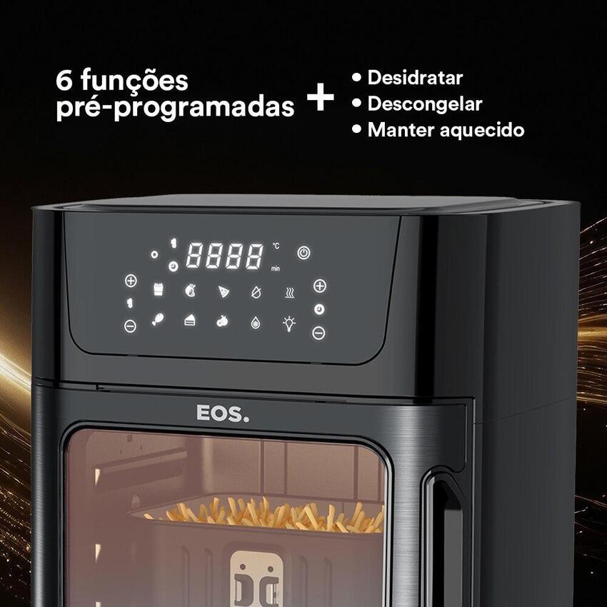 Transforme sua experiência na cozinha com a Fritadeira Air Fryer Oven EOS 15 Litros Digital Inox All Black EAF15IP. Com um design sofisticado e uma capacidade de 15 litros, este aparelho multifuncional 4 em 1 é tudo o que você precisa para fritar, desidratar, descongelar e manter suas refeições sempre aquecidas. Seu amplo espaço permite preparar receitas incríveis para toda a família.