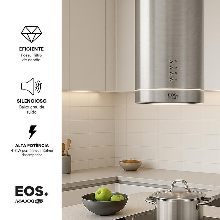 Coifa e Depurador de Ilha EOS 38cm Maxxi Air Redonda Inox 1200m³/h EMCO41IRI 220V