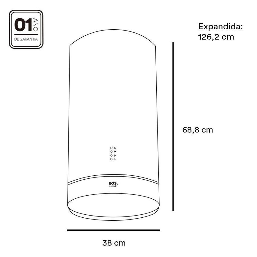 Possui iluminação LED, 3 velocidades de sucção, chaminé ajustável e filtros de carvão ativado e alumínio lavável, que facilitam a limpeza e aumentam a durabilidade. Ideal para quem quer alta performance com visual elegante e funcionamento silencioso.