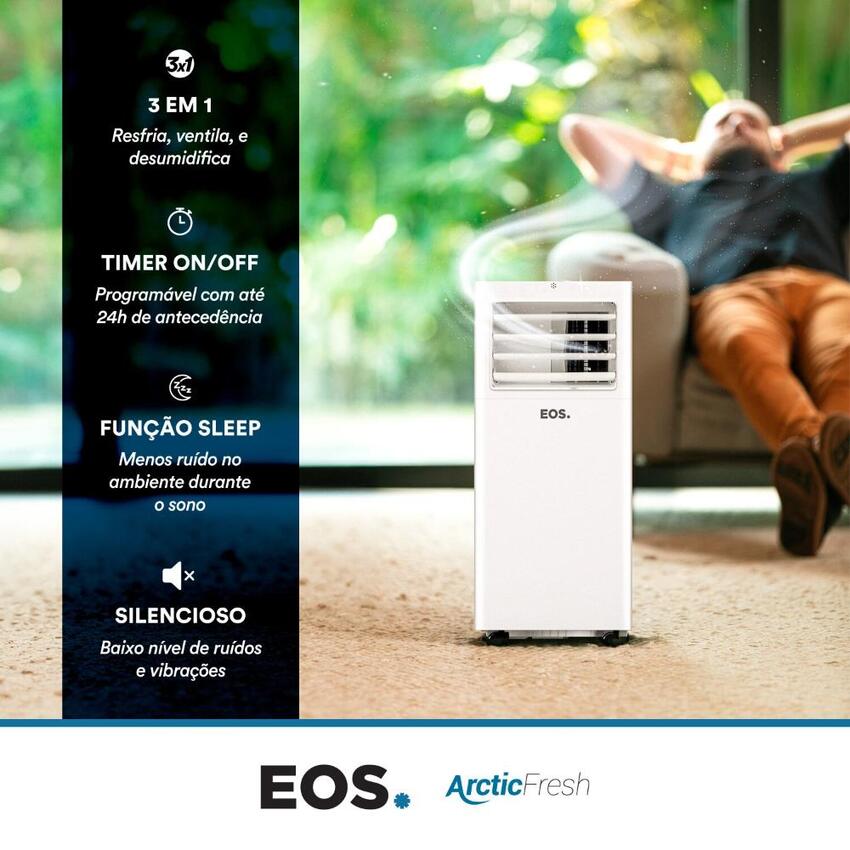O Ar-Condicionado Portátil 10000 BTUs EOS Ultra Slim EAP10F é a solução ideal para quem busca versatilidade e eficiência no conforto térmico de ambientes maiores. Com sua alta capacidade de 10.000 BTUs/h, ele garante um resfriamento eficaz m...