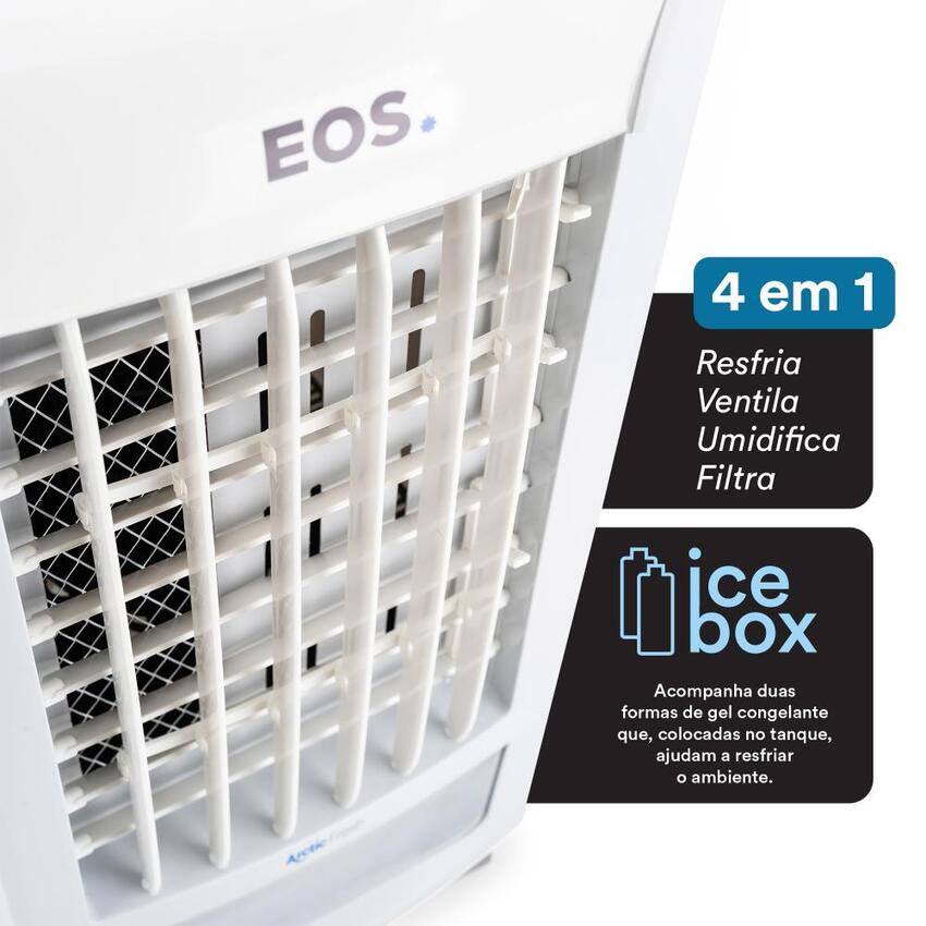 Mantenha seu ambiente sempre fresco e agradável com o Climatizador de Ar EOS Artic Fresh 3,5 Litros 4 em 1. Com uma potência econômica de 75W, ele combina eficiência energética e conforto, permitindo que você aproveite um ar mais refrescante sem gastos excessivos. Este modelo 4 em 1 é capaz de ventilar, umidificar, filtrar e resfriar o ar, proporcionando um ambiente mais agradável e saudável para toda a família.
