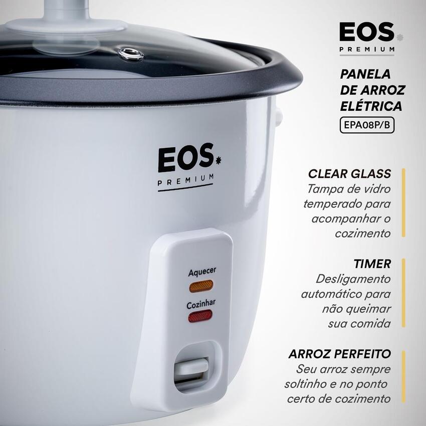 Torne o preparo de refeições mais prático e rápido com a Panela Elétrica de Arroz EOS Premium Pratic. Com uma capacidade de 1,5 litros, equivalente a 8 xícaras, esta panela é ideal para preparar porções generosas para toda a fam&iacut...