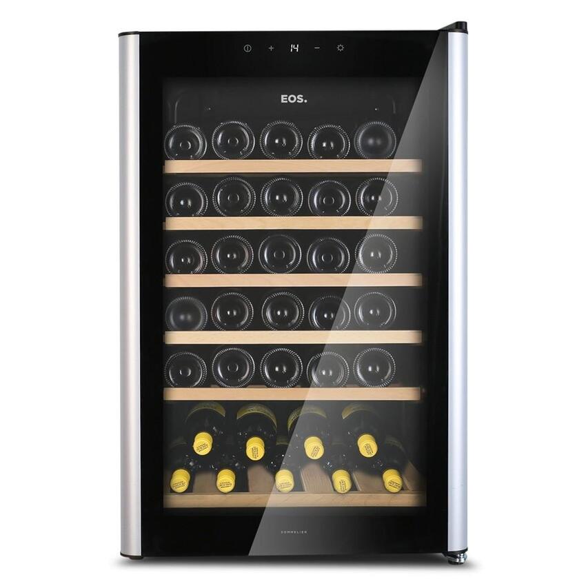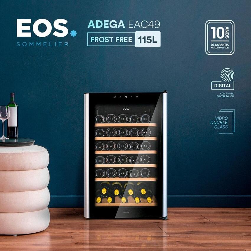 A Adega Climatizada EOS Sommelier comporta até 49 garrafas, com temperatura ajustável de 4°C a 22°C pelo painel digital touch. Seu design elegante com vidro duplo, compressor com gás ecológico e acabamento durável garantem conservação ideal dos vinhos. A Trava de Painel evita mudanças acidentais, e os 10 anos de garantia no compressor reforçam a confiabilidade e qualidade do produto.