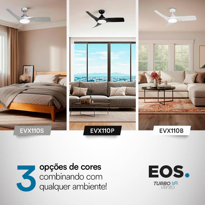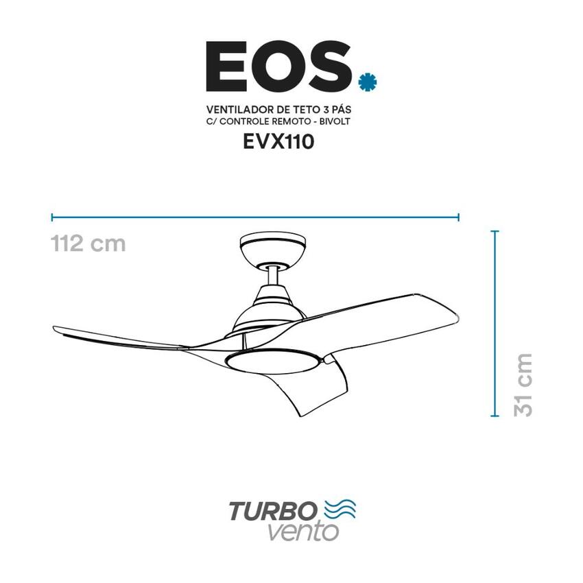Ventilador de Teto EOS Turbo Vento 3 Pás com Controle Remoto 112cm 150W Branco EVX110B Bivolt