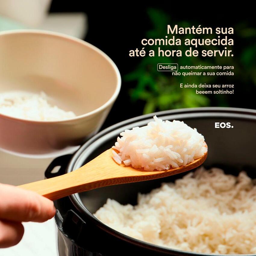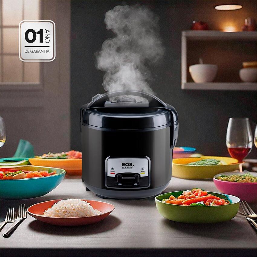 A Panela Elétrica de Arroz EOS 5 Xícaras Inox All Black oferece praticidade e eficiência no preparo das refeições. Com 400W de potência, ga...