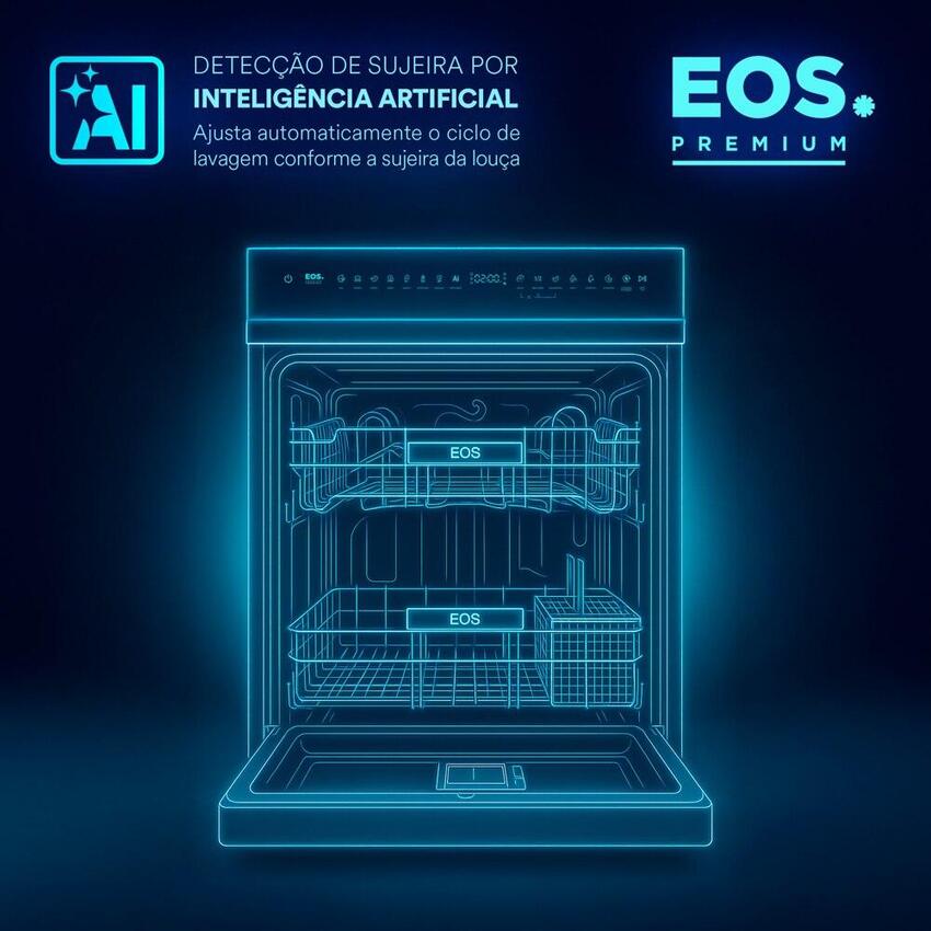 Com tecnologia de Inteligência Artificial, a ELL142S detecta automaticamente o nível de sujeira nas louças e ajusta o ciclo de lavagem, otimizando recursos e garantindo excelente resultado. São 8 programas de lavagem, incluindo modos como ECO, Intensivo, Higiene e GlassCare, além de funções extras como Meio Carga, Extra Seco e Extra Higiene — tudo pensado para diferentes perfis de uso.