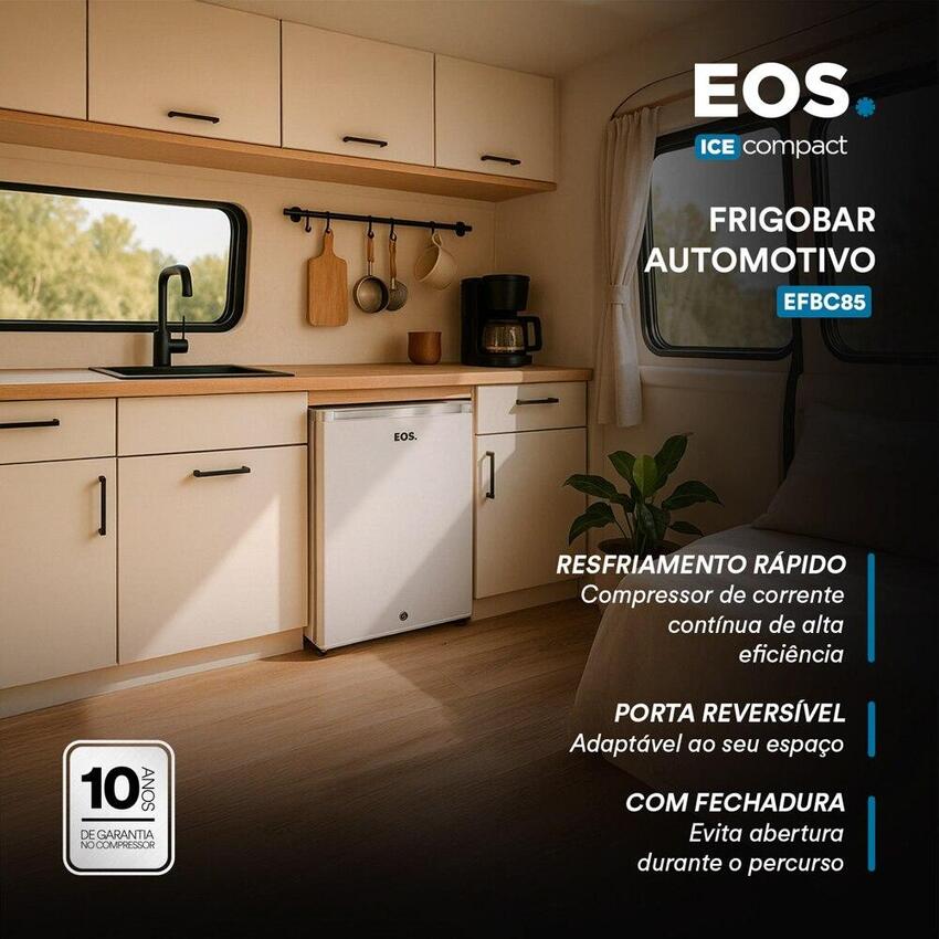 Ideal para motorhomes, trailers e caminhões, o EOS Ice Compact 76L oferece resfriamento rápido e silencioso com compressor DC, operando em 12V ou...
