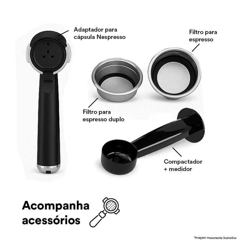 Cafeteira Espresso 3 em 1 EOS Prepara Espresso, Latte e Cappuccino com 20 Bar de Pressão Inox ECF07EC 110V