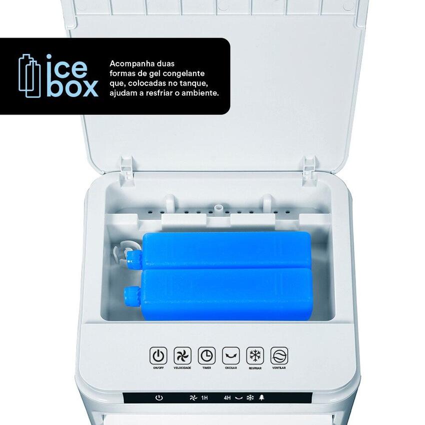 4 em 1: ventilação, umidificação, filtração e resfriamento; Alta capacidade de circulação com 300 m³/h; Silencioso, ideal para quartos, salas e escritórios; Econômico e sustentável com apenas 80W de potência; Controle remoto e display LED para uso prático; Inclusão de 2 pacotes de gelo e oscilação automática para frescor uniforme.