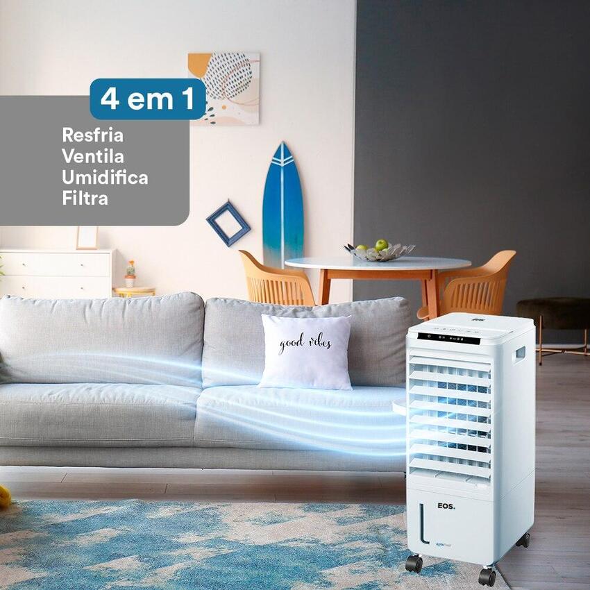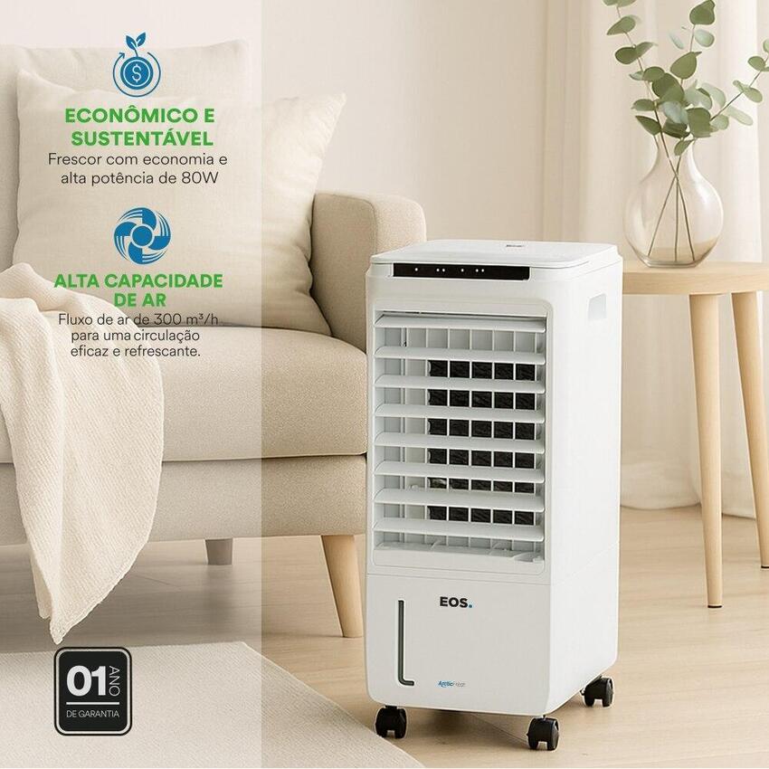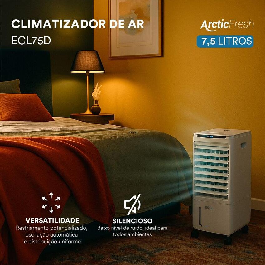 O Climatizador de Ar EOS 7,5 Litros 4 em 1 ECL75D combina design moderno, eficiência e praticidade para enfrentar os dias quentes com conforto. Com funções 4 em 1 (ventilação, umidificação, filtração e resfriam...