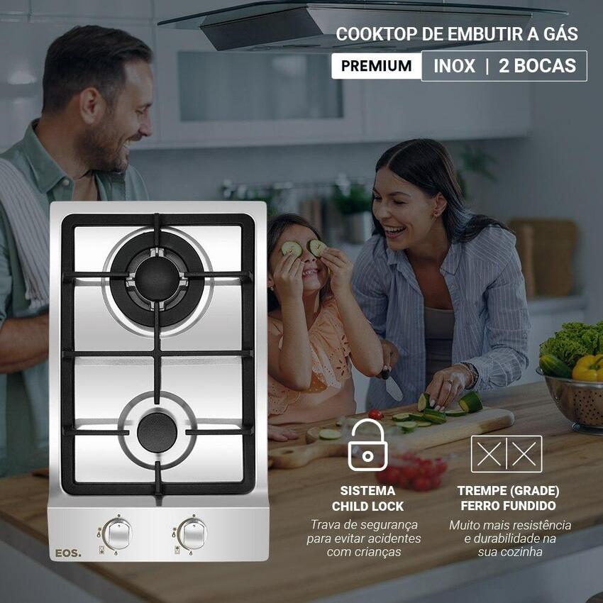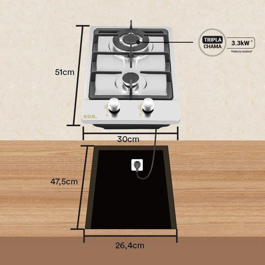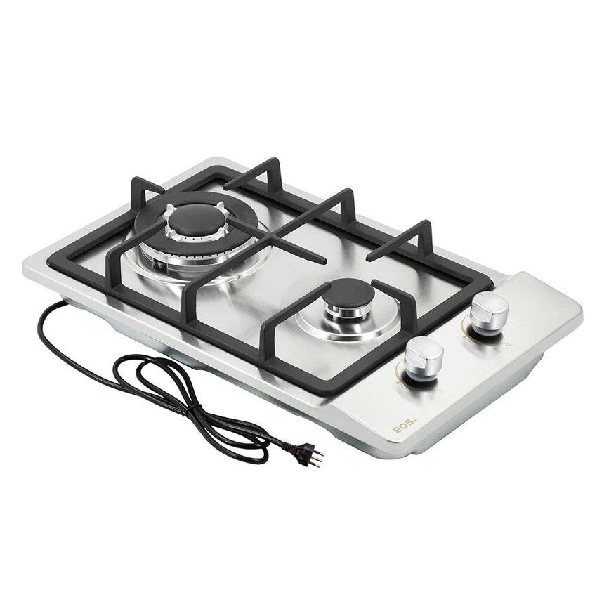 Cooktop Dominó a Gás 2 Bocas EOS Chama Tripla Inox ECG02 Bivolt