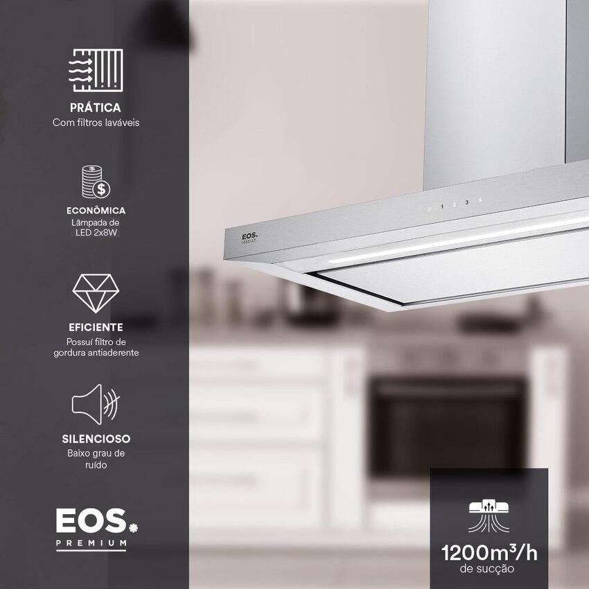 Coifa e Depurador de Parede EOS 90cm Premium Digital Touch Inox 1200m³/h EPC090PTDI 110V