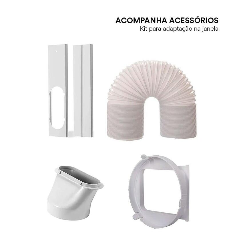 Além disso, conta com rodízios integrados, kit deslizante para janelas, controle remoto, timer programável e filtros laváveis, trazendo praticidade e conveniência para o seu dia a dia. Seguro e sustentável, utiliza o refrigerante ecológico R32 e possui sistema de proteção contra superaquecimento e desligamento automático do reservatório.