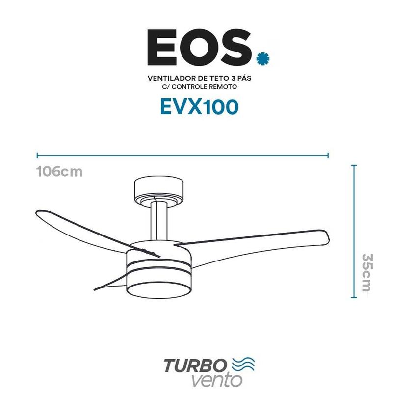 Ventilador de Teto EOS Turbo Vento 3 pás c/controle remoto 106cm prata 150W EVX100S Bivolt