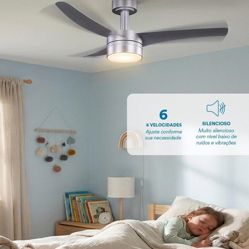 Equipado com motor DC de alta eficiência, o ventilador opera com baixo consumo de energia e mínimo ruído, tornando-se perfeito para uso contínuo em salas, quartos e escritórios. O controle remoto permite ajustar facilmente as 6 velocidades, selecionar o sentido do fluxo de ar (verão ou inverno) e controlar a iluminação LED integrada, que oferece três temperaturas de cor: quente (3000K), neutra (4500K) e fria (6000K), adequando-se a diferentes momentos e necessidades.