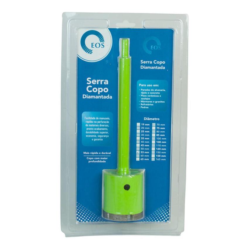 A serra copo é uma serra em formato circular. É utilizada em conjunto com a furadeira elétrica e acompanha outros acessórios, como a haste principal e haste guia (para centralizar o início do furo). A serra diamantada é indicada para mármores, cerâmicas e concretos e seu corte é suave e rápido, fazendo com que a serra seja altamente durável.