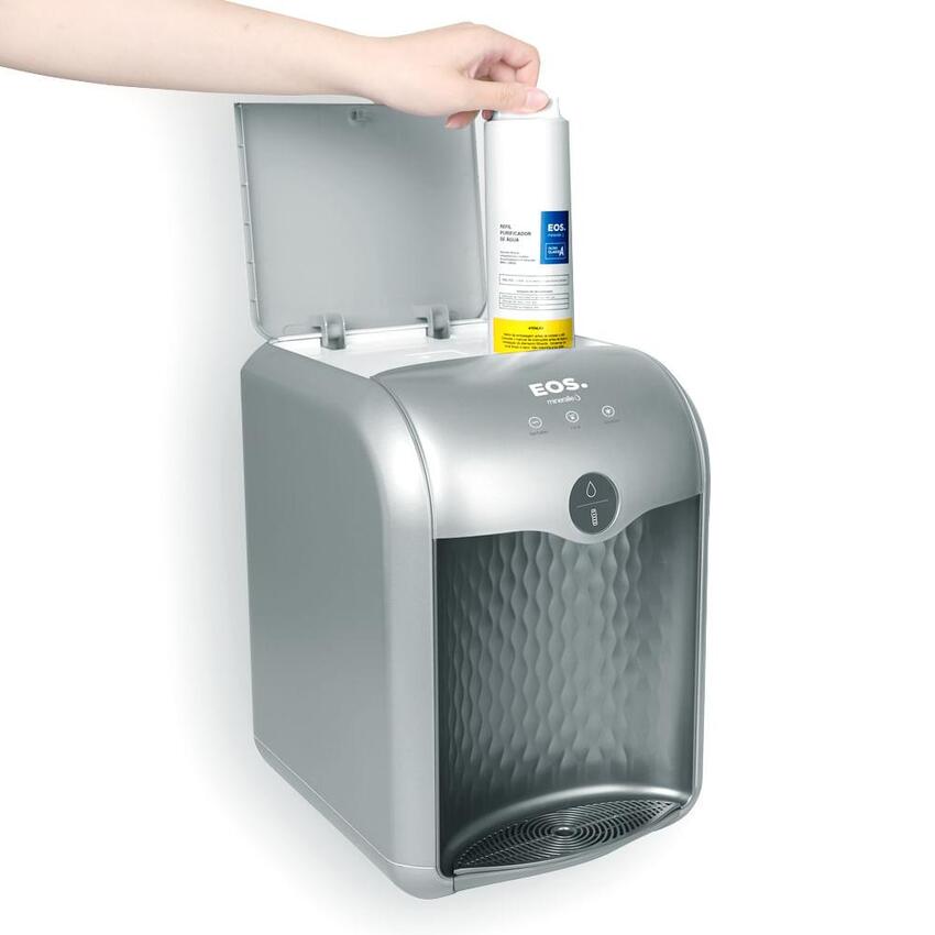 O Purificador de água EOS PREMIUM possui sistêma eletônico para gelar água, economiza energia e sem fazer barulho.