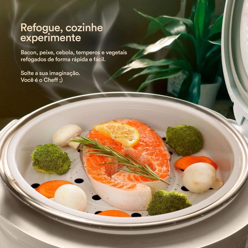 - Função Refogar - permite você preparar bacon, cebola, temperos e vegetais refogados de forma rápida e fácil
