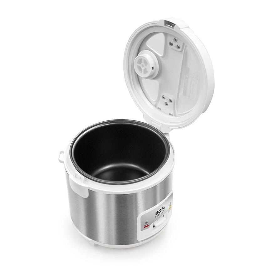 As panelas EOS possibilitam um arroz perfeito além de também permitir o preparo de legumes. Sua alta capacidade interna, permitindo até 5 xícaras, prepara a quantidade certa de arroz para seu consumo, deixando o arroz soltinho, no ponto certo e cheio de sabor. A panela EOS ainda se desliga automaticamente, evitando queimar o arroz e o ainda possui a função manter aquecido, deixando sua comida quentinha até a hora do consumo. Possui a função refogar, para facilitar seu preparo de cebola, bacon, temperos, vegetais ou qualquer outro alimento que você deseje preparar refogado.