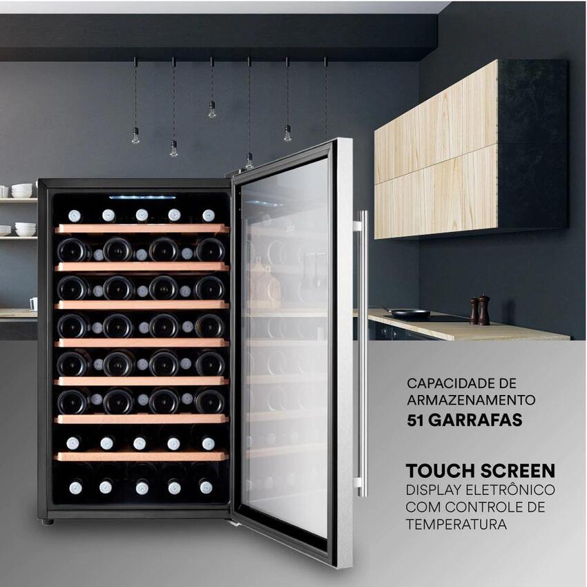 Moderna e sofisticada, a linha de Adega EOS Premium traz mais requinte ao seu ambiente além de garantir a conservação ideal para os seus vinhos. Conta com controle eletrônico de temperatura mais preciso, além de sistema de iluminação por LED para não danificar as características originais do vinho. Eco-Friendly a refrigeração por compressor com gás ecológico que não agride o meio ambiente e ainda reduz a sua conta de energia oferecendo um ótimo custo-benefício para você. Possui porta com acabamento em aço inox com painel de controle touch e puxadores embutidos.