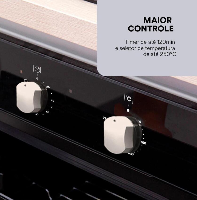 Maior controle - Timer de até 120 min e seletor de temperatura até 250°C;
