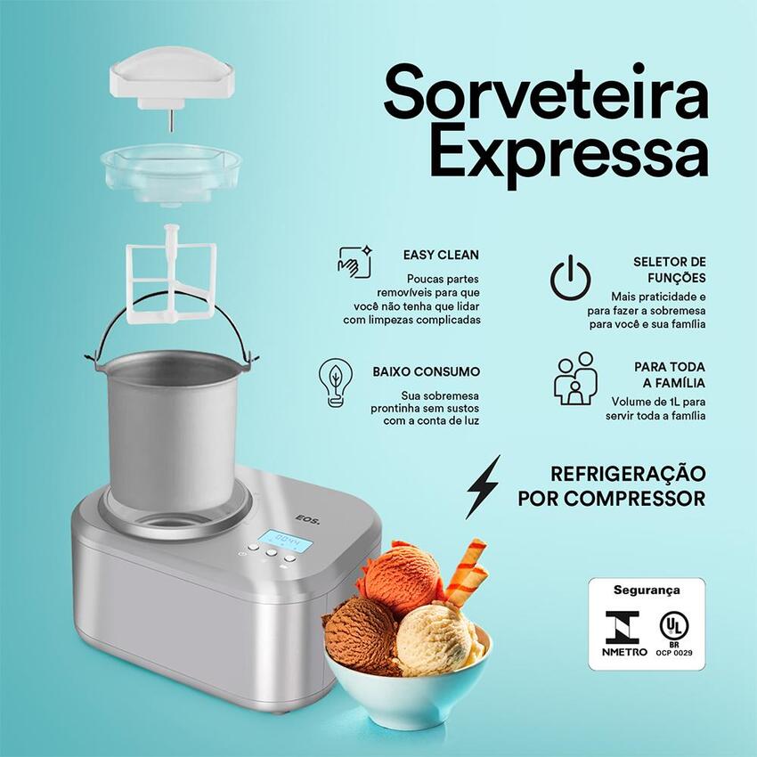 Com a Sorveteira Expressa EOS ESO02S você vai poder fazer receitas incríveis para seus amigos e família, de forma rápida e prática. Por utilizar um compressor para sua refrigeração, a Sorveteira Expressa EOS não requer nenhuma refrigera&ccedi...