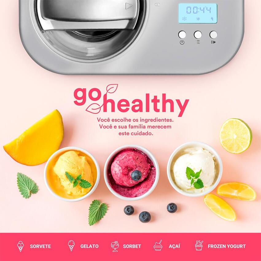 Com a Sorveteira Expressa EOS ESO02S você vai poder fazer receitas incríveis para seus amigos e família, de forma rápida e prática. Por utilizar um compressor para sua refrigeração, a Sorveteira Expressa EOS não requer nenhuma refrigeração prévia, sendo possível fazer o sorvete ao toque de um botão. Seu display de LCD permite que você acompanhe a programação e o tempo de preparo de forma fácil e prática. Você poderá fazer receitas saudáveis e muito saborosas, melhorando a saúde de sua família. A sorveteira EOS permite ainda que você escolha a refrigeração, mistura ou receita de sorvete, fornecendo mais facilidade e autonomia para suas receitas.