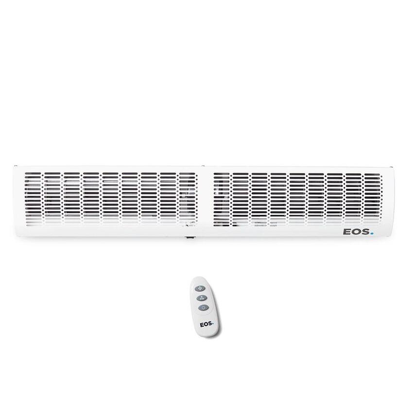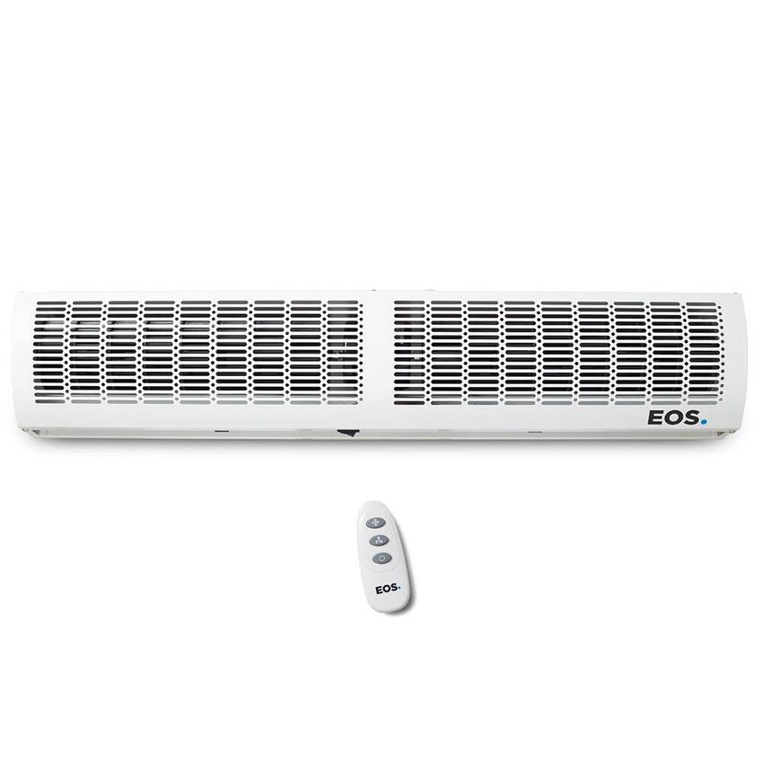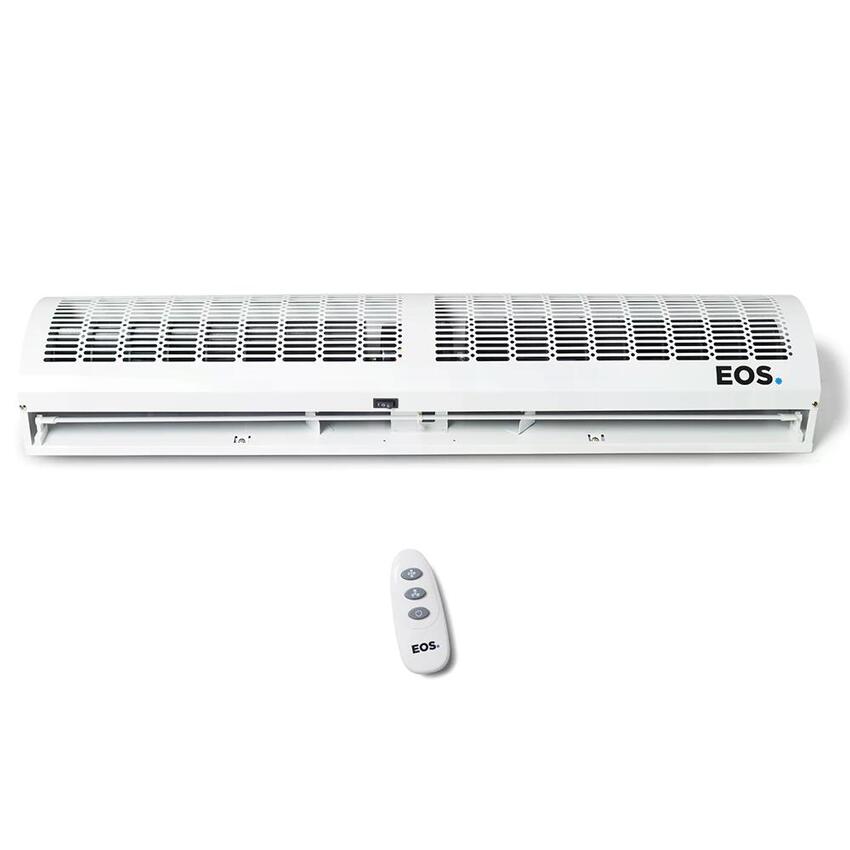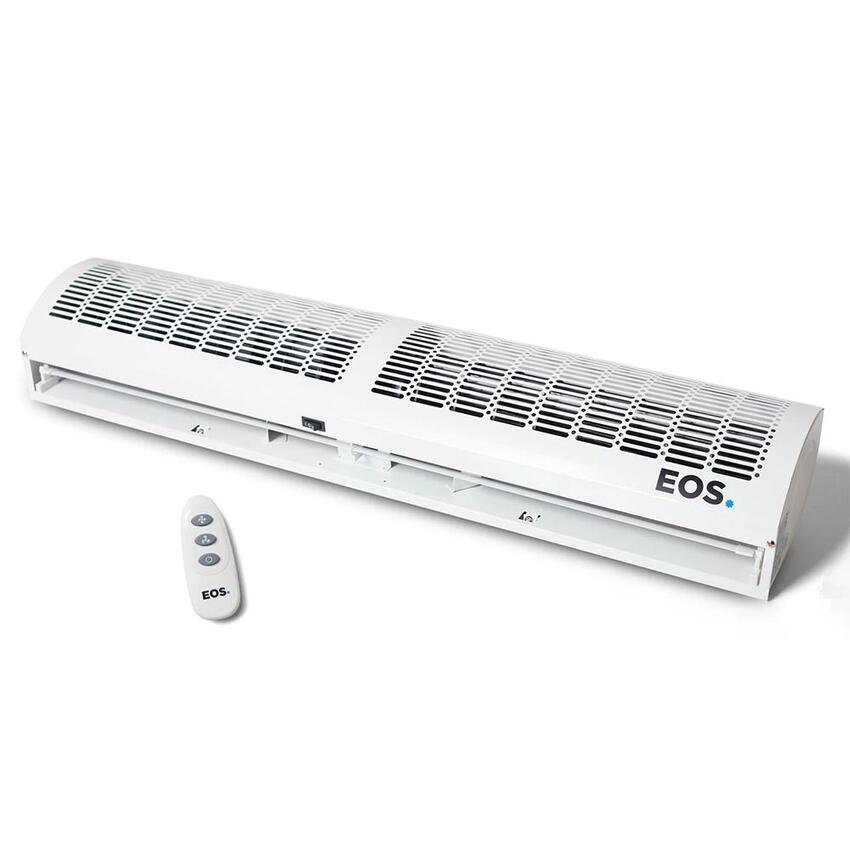 A Cortina de Ar EOS tem a função de separar a temperatura ambiente exterior da temperatura interior. Desenvolvido especialmente para áreas de comércio que são climatizadas, mas precisam manter as portas abertas, fornecendo uma maior economia de energia ao mesmo tempo em que mantém o conforto térmico do local. A Cortina de Ar EOS é instalada sobre a porta, a uma distância de até 3 metros acima do piso, criando assim uma barreira de vento que garante uma isolação térmica, impedindo que o ar refrigerado escape. Além disso, a Cortina de Ar EOS evita a entrada de poeira, fumaça, insetos e outras partículas. A correta utilização das cortinas de ar EOS aumenta a vida útil do equipamento de refrigeração (como ar condicionado e câmaras frigoríficas) gerando uma economia elétrica de até 35%. Seu controle remoto facilita a programação e alteração de velocidade e ligar e desligar o produto, mesmo se ele for instalado em grandes alturas ou em locais inacessíveis.