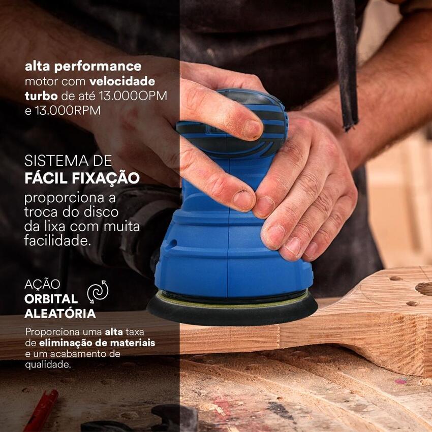 Além disso, a lixadeira roto-orbital EOS possui um coletor de pó que reduz a sujeira do ambiente durante o processo de lixamento. Dessa forma, você poderá trabalhar com maior conforto e segurança, sem se preocupar com a poeira gerada pelo lixamento.