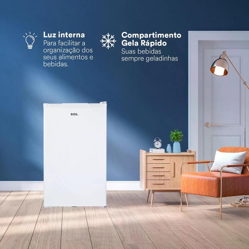 Além de sua ampla capacidade, o Frigobar EOS é eco-friendly, projetado para reduzir o consumo de energia e minimizar o impacto ambiental. Seu sistema de refrigeração eficiente e o isolamento térmico de alta qualidade mantêm a temperatura interna ideal, enquanto o termostato ajustável permite que você defina o nível desejado de resfriamento, garantindo uma conservação adequada dos alimentos e bebidas armazenados.