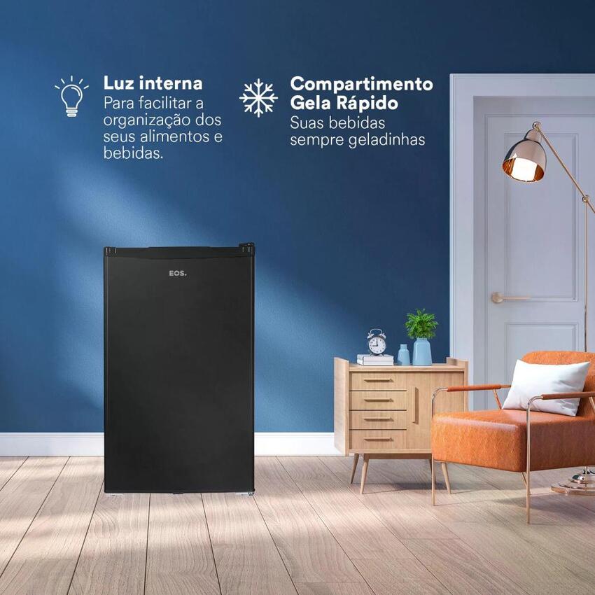 Além de sua ampla capacidade, o Frigobar EOS é eco-friendly, projetado para reduzir o consumo de energia e minimizar o impacto ambiental. Seu sistema de refrigeração eficiente e o isolamento térmico de alta qualidade mantêm a temperatura interna ideal, enquanto o termostato ajustável permite que você defina o nível desejado de resfriamento, garantindo uma conservação adequada dos alimentos e bebidas armazenados.