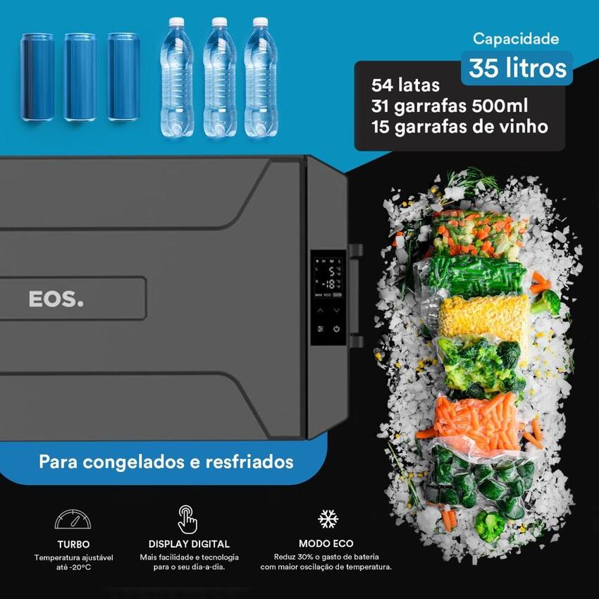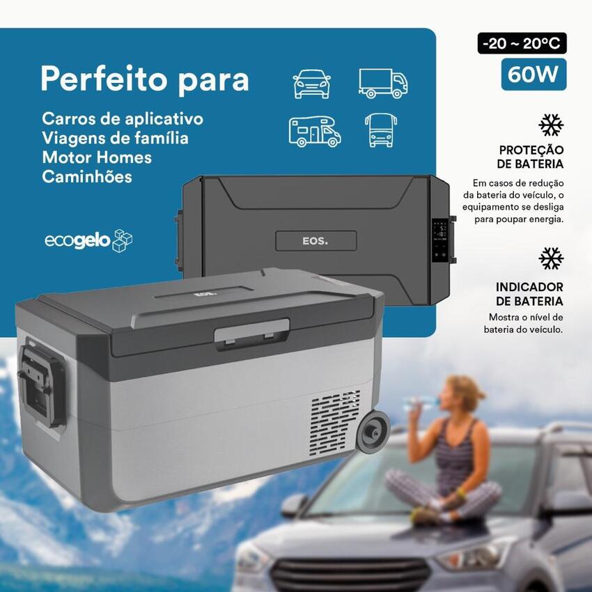 Compacto e silencioso o freezer portátil quadrivolt Eos fornece conforto e comodidade em viagens, acampamentos e quaisquer outras utilizações.