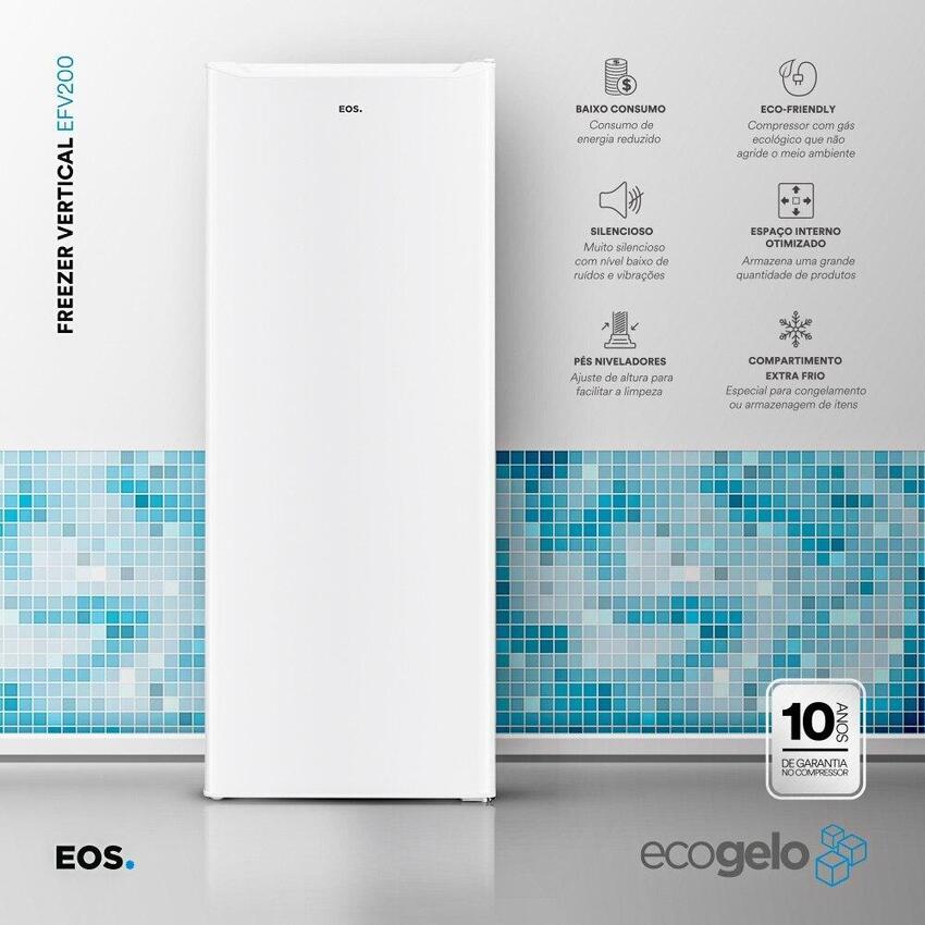 O Freezer Vertical EOS EcoGelo é compacto se adaptando perfeitamente a sua cozinha, salão de festas, churrasqueira ou quaquer outro local em que ele seja colocado.