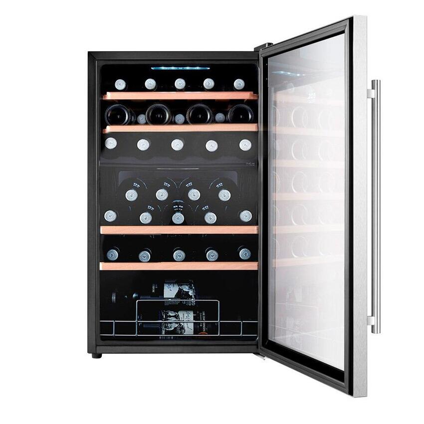 A adega Eos Dual Zone chegou para melhorar seu vinho do dia a dia. Com duas zonas distintas, permite a você armazenar vinhos brancos e tintos ao mesmo tempo, mantendo a temperatura ideal para cada vinho. Seu painel interno com tecnologia Digital Touch, permite a você programar facilmente a temperatura desejada em cada uma das zonas do produto, mantendo seu vinho sempre na temperatura ideal. A iluminação interna em Led, permite que você destaque seus vinhos e também escolha a garrafa que deseja tomar de forma fácil, sem precisar procurar. A isolação em vidro duplo da porta, fornece um menor consumo de energia, reduzindo a troca de calor do produto com o meio externo. Com prateleiras de vinho em madeira, a adega Eos vai adicionar muito mais sofisticação para seu ambiente, deixando o local muito mais bonito.Principais Características: