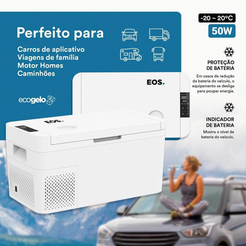 Compacto e silencioso o freezer portátil quadrivolt Eos fornece conforto e comodidade em viagens, acampamentos e quaisquer outras utilizações.