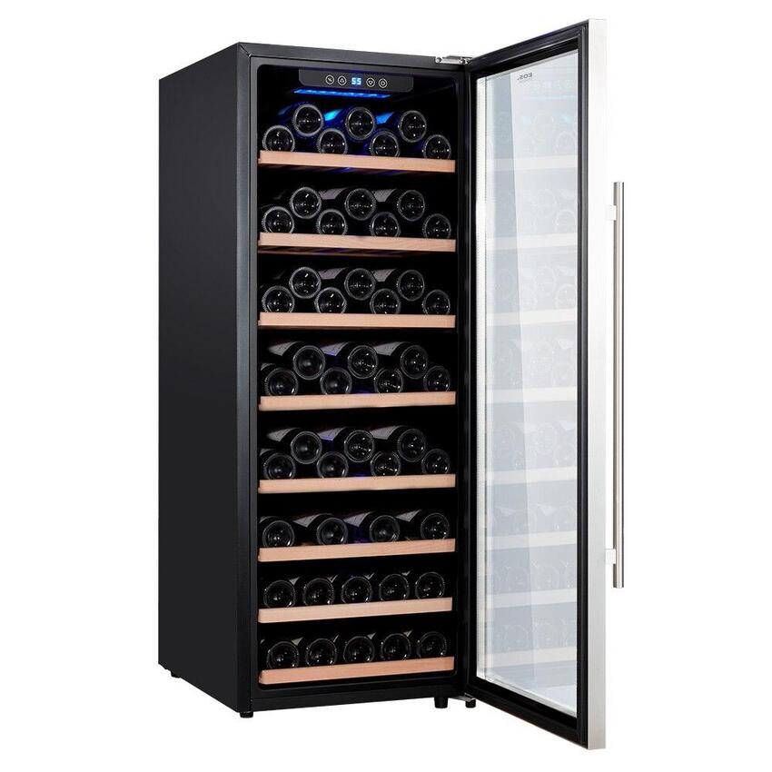 Com controle eletrônico de temperatura variando de 5°C a 18°C, esta adega permite que você ajuste o ambiente de armazenamento de acordo com as necessidades específicas de sua coleção. A iluminação interna de LED destaca a beleza de suas garrafas, enquanto o baixo nível de ruído e o sistema antivibração garantem um ambiente tranquilo para seus vinhos envelhecerem com perfeição.