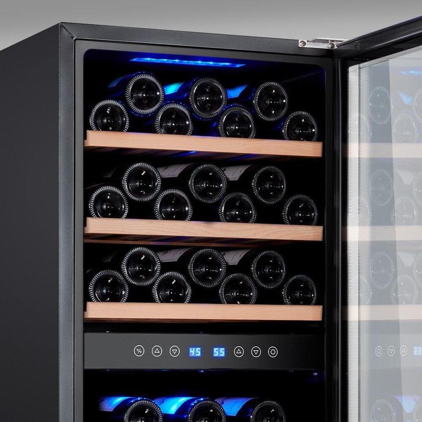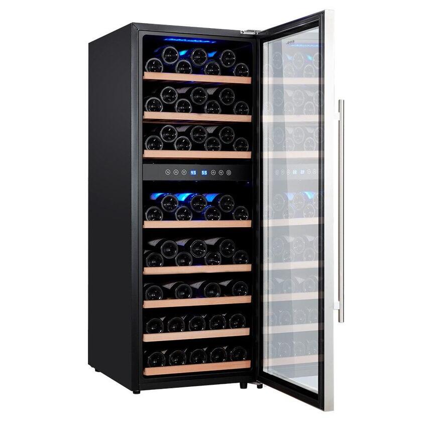 Temperatura: 5ºC a 10°C | 10°C a 18°C: Apresenta uma faixa de temperatura ajustável em duas zonas, possibilitando armazenar diferentes tipos de vinho, cada um na temperatura adequada.