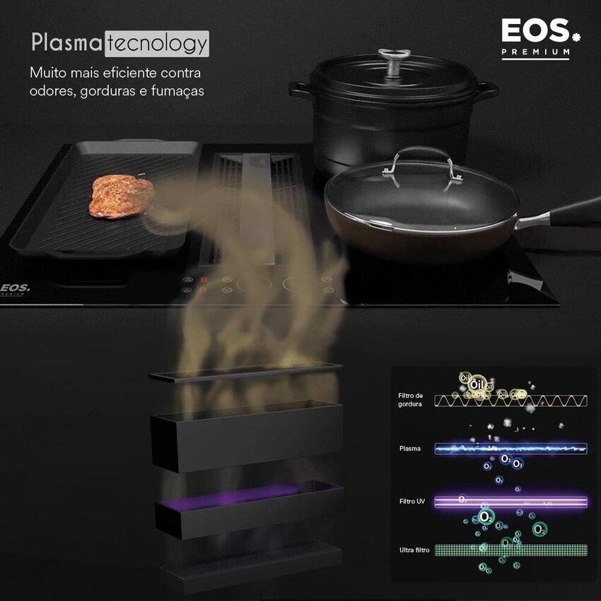 Equipado com Plasma Technology, este cooktop não só proporciona um desempenho excepcional de cozimento, mas também garante um ambiente limpo e livre de odores desagradáveis, fumaça e gordura.